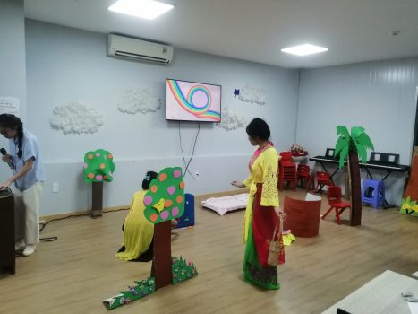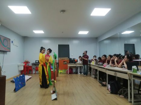 Sáng ngày 02 tháng 8 tại phòng học C305, Khoa Khoa học Giáo dục đã tổ chức hoạt động dự giờ giảng viên Nguyễn Thị Kim Hoa giảng dạy học phần: “Văn học thiếu nhi và hướng dẫn trẻ mầm non làm quen với tác phẩm văn học” với bài dạy: Thực hành phương pháp đóng kịch.